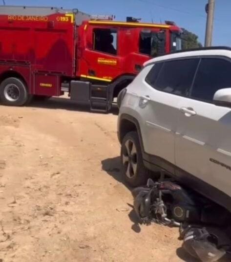 Na tarde deste domingo (21), um acidente de trânsito foi registrado em uma estrada de chão, nas proximidades da faculdade UniLagos, em Araruama.