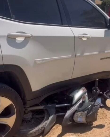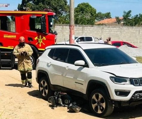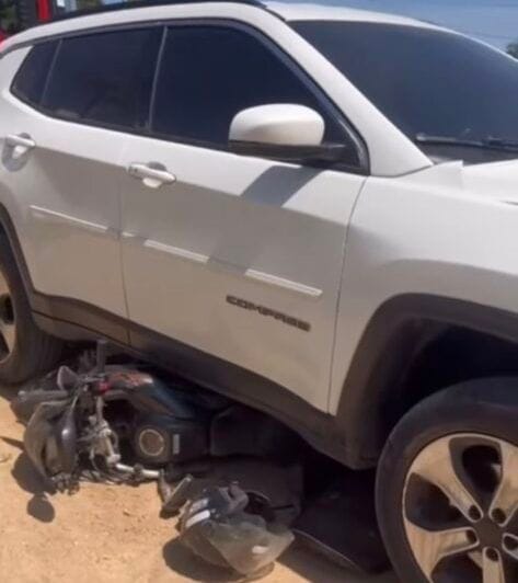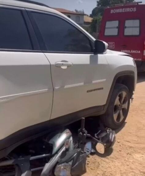 A colisão envolveu um Jeep Compass e uma motocicleta. A condutora da moto sofreu uma fratura exposta na perna e precisou ser socorrida em estado delicado por equipes de emergência.