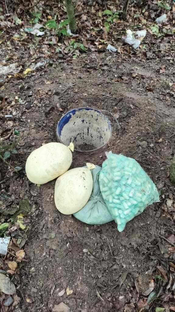 De acordo com a Polícia Militar, a ação foi conduzida pelo GAT II – 3ª CIA, após informações privilegiadas sobre o funcionamento do esquema criminoso na região. Durante a varredura em uma área de mata, os agentes encontraram um verdadeiro depósito do tráfico, contendo grande quantidade de drogas e acessórios para comercialização.