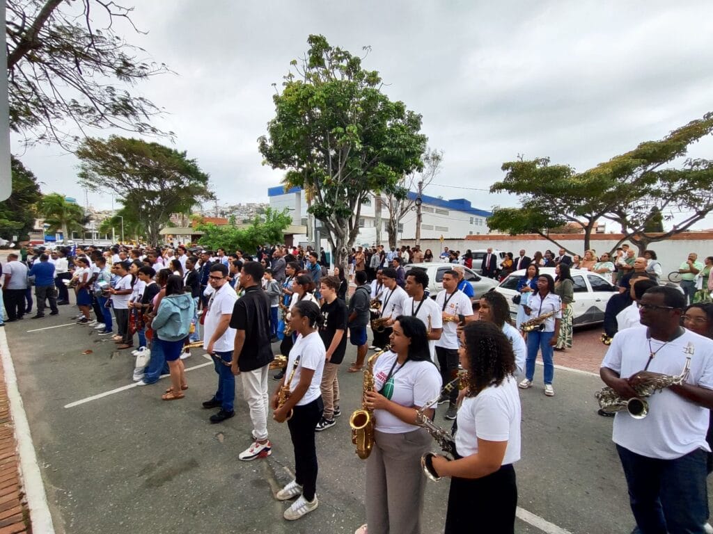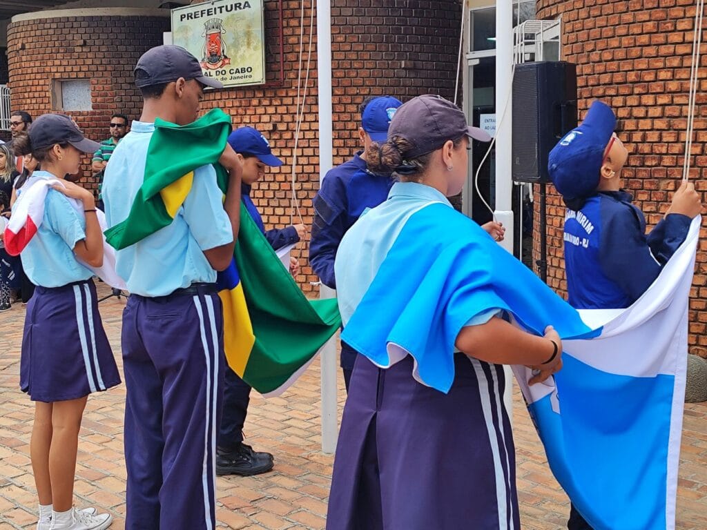 O hasteamento da bandeira foi conduzido pela Guarda Mirim de Arraial do Cabo, em parceria com a Guarda Mirim de Cardoso Moreira, ao som do Hino Nacional executado pela Orquestra Lírios do Vale. O evento foi encerrado com um momento de grande oração.
