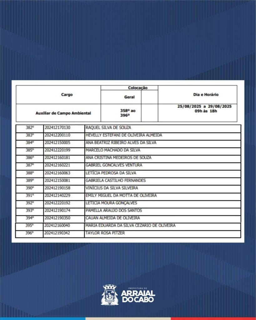Processo seletivo: confira candidatos aptos em Arraial do Cabo