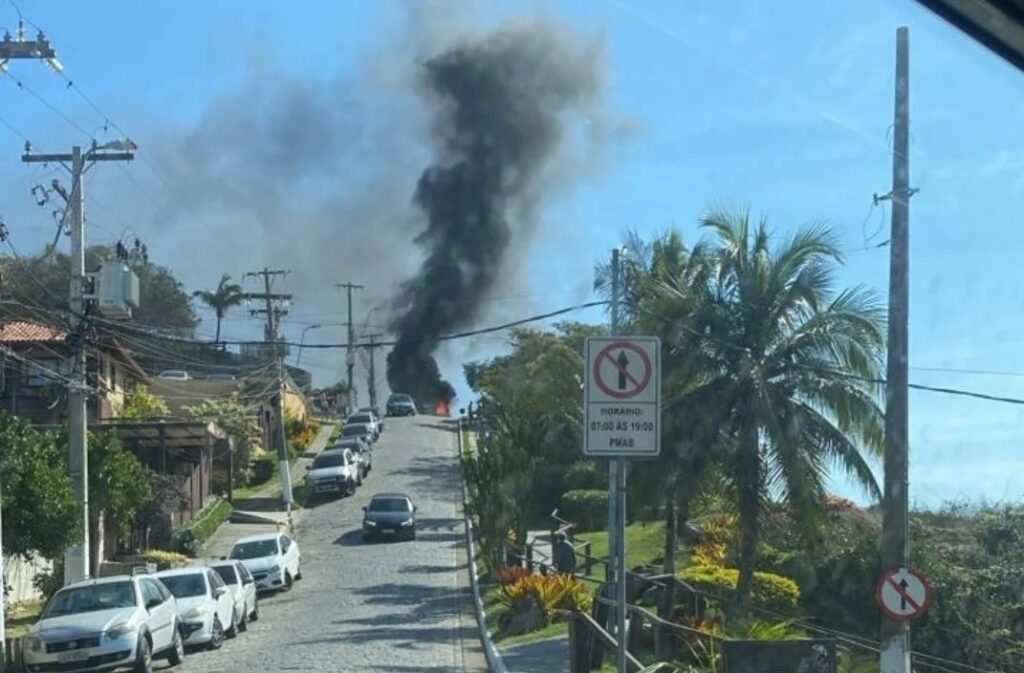 Na tarde deste domingo (21), um veículo do tipo buggy pegou fogo na subida do Morro João Fernandes, próximo ao mirante, em Armação dos Búzios.