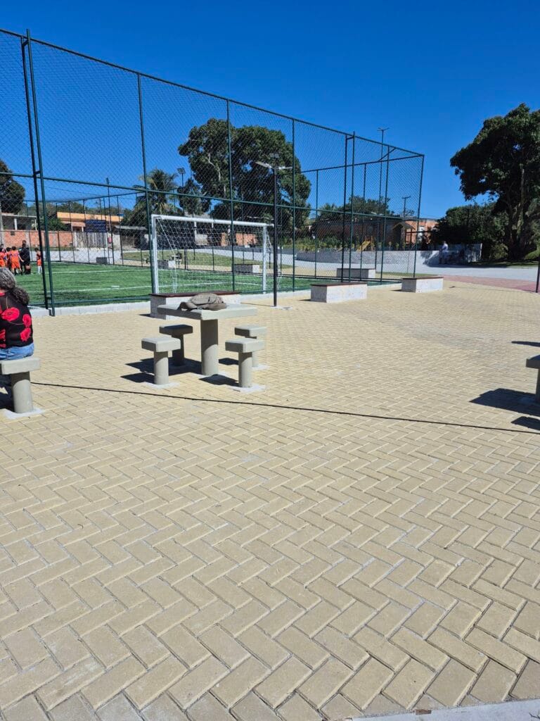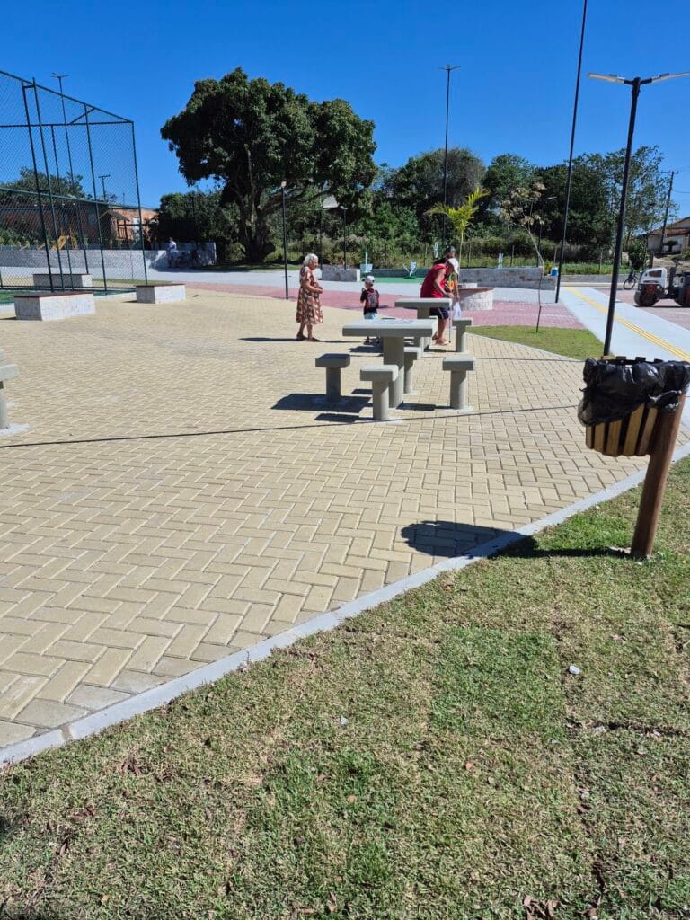 O local recebeu uma quadra de grama sintética, brinquedos para crianças, aparelhos de ginástica ao ar livre e áreas de convivência, oferecendo mais qualidade de vida aos moradores de todas as idades.