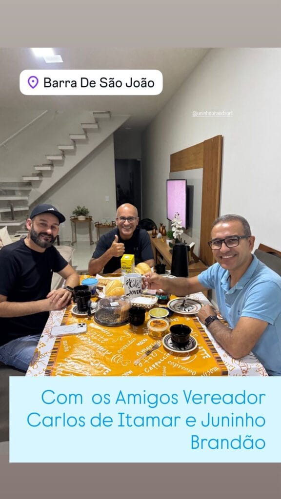 Logo depois, o secretário esteve em Barra de São João, distrito de Casimiro de Abreu, para uma reunião com o vice-presidente da Câmara Municipal e vereador mais votado do município, Carlos de Itamar, acompanhado de seu assessor Juninho Brandão.