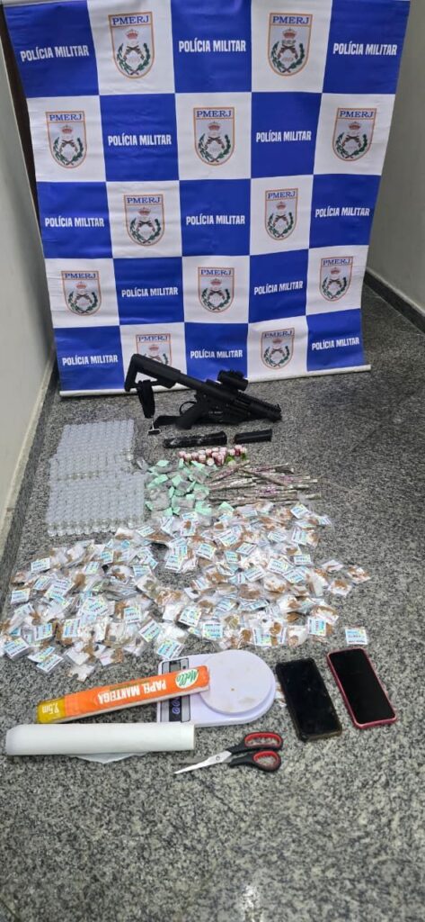 O acusado foi encaminhado à 118ª DP de Araruama, onde foi autuado por posse ou porte ilegal de arma de fogo de uso restrito e tráfico de drogas, permanecendo preso à disposição da Justiça.